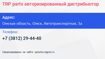 TRP-parts, авторизированный дистрибьютор по адресу Омская область, Омск, Автотранспортная, 5а в дальнейшем Организация, размещена в следующих категориях: