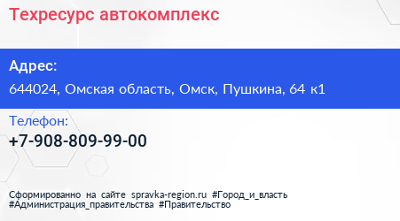 Техресурс, автокомплекс по адресу 644024, Омская область, Омск, Пушкина, 64 к1 в дальнейшем Организация, размещена в следующих категориях: