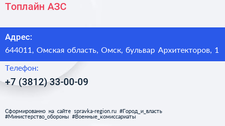 Топлайн, АЗС по адресу 644011, Омская область, Омск, бульвар Архитекторов, 1 в дальнейшем Организация, размещена в следующих категориях: