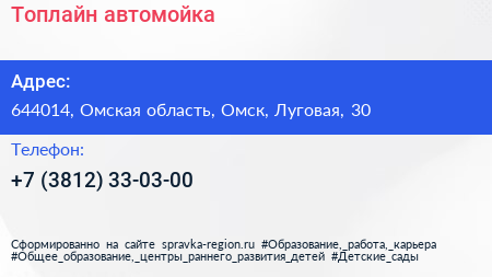 Топлайн, автомойка по адресу 644014, Омская область, Омск, Луговая, 30 в дальнейшем Организация, размещена в следующих категориях: