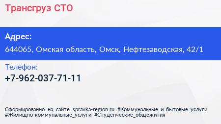 Трансгруз, СТО по адресу 644065, Омская область, Омск, Нефтезаводская, 42/1 в дальнейшем Организация, размещена в следующих категориях: