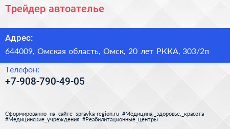 Трейдер, автоателье по адресу 644009, Омская область, Омск, 20 лет РККА, 303/2п в дальнейшем Организация, размещена в следующих категориях: