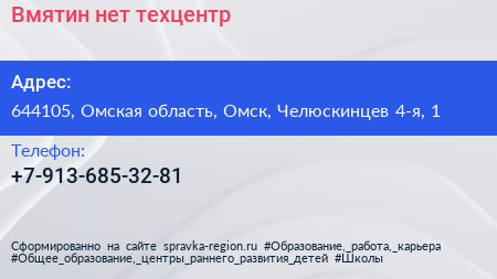 Вмятин.нет, техцентр по адресу 644105, Омская область, Омск, Челюскинцев 4-я, 1 в дальнейшем Организация, размещена в следующих категориях: