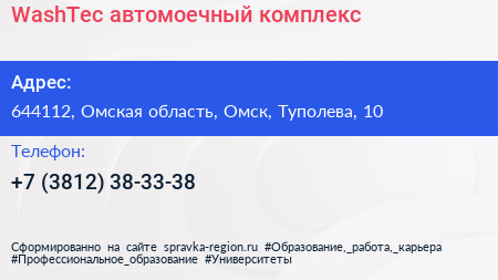 WashTec, автомоечный комплекс по адресу 644112, Омская область, Омск, Туполева, 10 в дальнейшем Организация, размещена в следующих категориях: