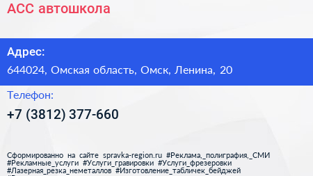 АСС, автошкола по адресу 644024, Омская область, Омск, Ленина, 20 в дальнейшем Организация, размещена в следующих категориях: