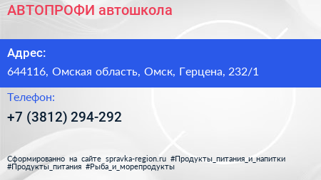 АВТОПРОФИ, автошкола по адресу 644116, Омская область, Омск, Герцена, 232/1 в дальнейшем Организация, размещена в следующих категориях: