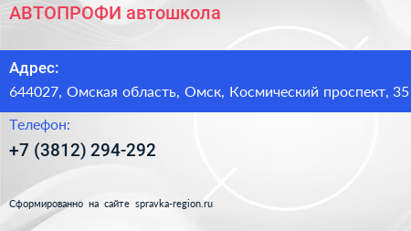 АВТОПРОФИ, автошкола по адресу 644027, Омская область, Омск, Космический проспект, 35 в дальнейшем Организация, размещена в следующих категориях: