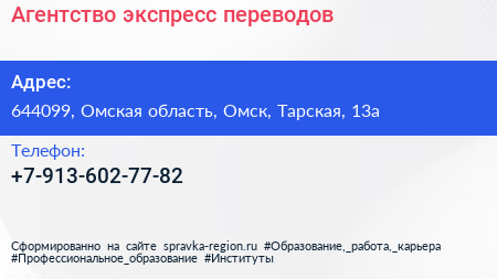 Агентство экспресс-переводов по адресу 644099, Омская область, Омск, Тарская, 13а в дальнейшем Организация, размещена в следующих категориях: