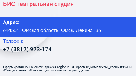 БИС, театральная студия по адресу 644551, Омская область, Омск, Ленина, 36 в дальнейшем Организация, размещена в следующих категориях: