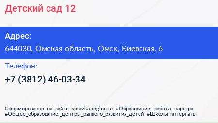 Детский сад №12 по адресу 644030, Омская область, Омск, Киевская, 6 в дальнейшем Организация, размещена в следующих категориях: