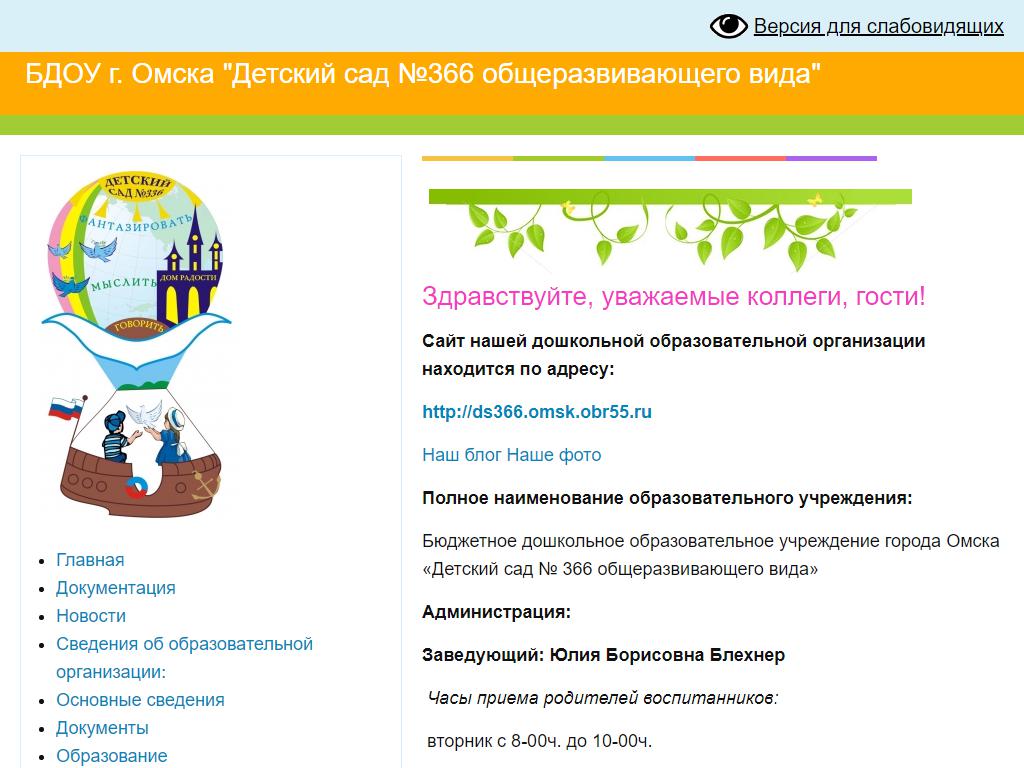 Детский сад №366 общеразвивающего вида по адресу 644013, Омская область, Омск, Краснознамённая, 26 в дальнейшем Организация, размещена в следующих категориях: