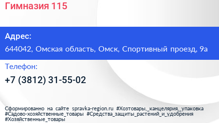 Гимназия №115 по адресу 644042, Омская область, Омск, Спортивный проезд, 9а в дальнейшем Организация, размещена в следующих категориях:
