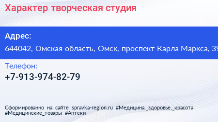 Характер, творческая студия по адресу 644042, Омская область, Омск, проспект Карла Маркса, 39 в дальнейшем Организация, размещена в следующих категориях: