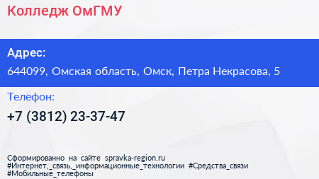 Колледж, ОмГМУ по адресу 644099, Омская область, Омск, Петра Некрасова, 5 в дальнейшем Организация, размещена в следующих категориях: