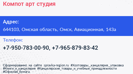 Компот, арт-студия по адресу 644103, Омская область, Омск, Авиационная, 143а в дальнейшем Организация, размещена в следующих категориях: