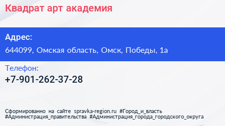 Квадрат, арт-академия по адресу 644099, Омская область, Омск, Победы, 1а в дальнейшем Организация, размещена в следующих категориях: