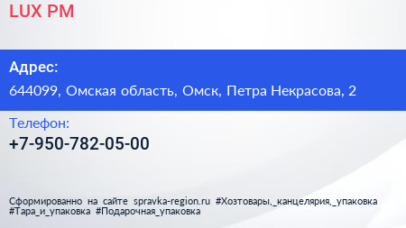 LUX PM по адресу 644099, Омская область, Омск, Петра Некрасова, 2 в дальнейшем Организация, размещена в следующих категориях:
