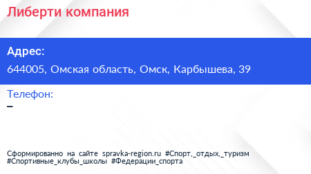 Либерти, компания по адресу 644005, Омская область, Омск, Карбышева, 39 в дальнейшем Организация, размещена в следующих категориях: