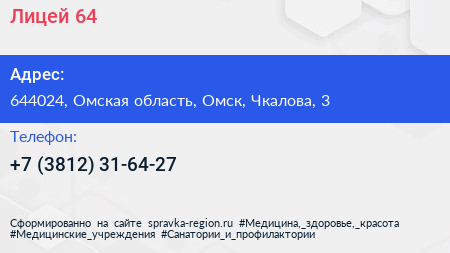 Лицей №64 по адресу 644024, Омская область, Омск, Чкалова, 3 в дальнейшем Организация, размещена в следующих категориях:
