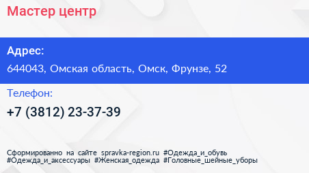Мастер, центр по адресу 644043, Омская область, Омск, Фрунзе, 52 в дальнейшем Организация, размещена в следующих категориях: