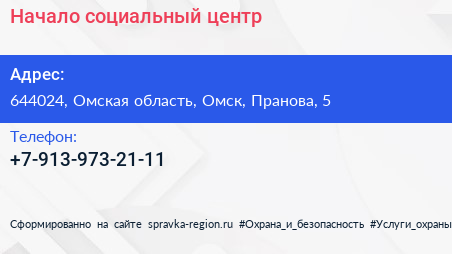 Начало, социальный центр по адресу 644024, Омская область, Омск, Пранова, 5 в дальнейшем Организация, размещена в следующих категориях: