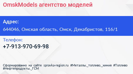 OmskModels, агентство моделей по адресу 644046, Омская область, Омск, Декабристов, 116/1 в дальнейшем Организация, размещена в следующих категориях: