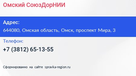 Омский СоюзДорНИИ по адресу 644080, Омская область, Омск, проспект Мира, 3 в дальнейшем Организация, размещена в следующих категориях: