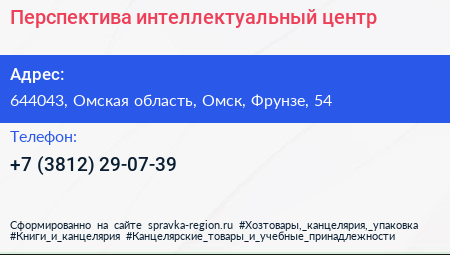 Перспектива, интеллектуальный центр по адресу 644043, Омская область, Омск, Фрунзе, 54 в дальнейшем Организация, размещена в следующих категориях: