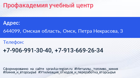 Профакадемия, учебный центр по адресу 644099, Омская область, Омск, Петра Некрасова, 3 в дальнейшем Организация, размещена в следующих категориях: