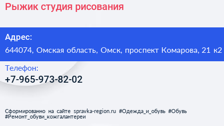 Рыжик, студия рисования по адресу 644074, Омская область, Омск, проспект Комарова, 21 к2 в дальнейшем Организация, размещена в следующих категориях: