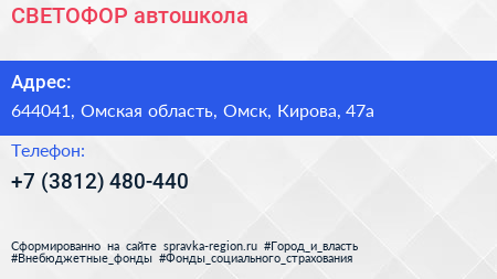 СВЕТОФОР, автошкола по адресу 644041, Омская область, Омск, Кирова, 47а в дальнейшем Организация, размещена в следующих категориях: