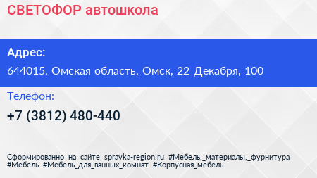 СВЕТОФОР, автошкола по адресу 644015, Омская область, Омск, 22 Декабря, 100 в дальнейшем Организация, размещена в следующих категориях: