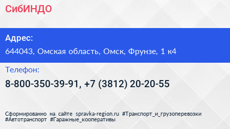 СибИНДО по адресу 644043, Омская область, Омск, Фрунзе, 1 к4 в дальнейшем Организация, размещена в следующих категориях: