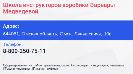Школа инструкторов аэробики Варвары Медведевой по адресу 644081, Омская область, Омск, Лукашевича, 10в в дальнейшем Организация, размещена в следующих категориях: