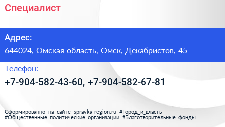 Специалист по адресу 644024, Омская область, Омск, Декабристов, 45 в дальнейшем Организация, размещена в следующих категориях: