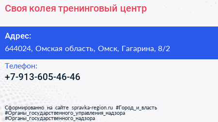 Своя колея, тренинговый центр по адресу 644024, Омская область, Омск, Гагарина, 8/2 в дальнейшем Организация, размещена в следующих категориях: