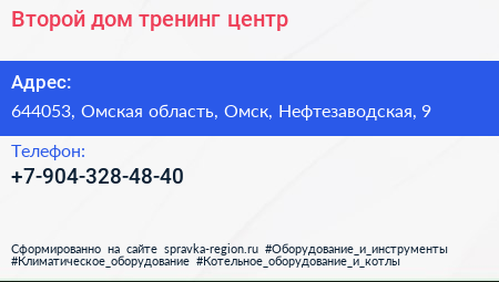 Второй дом, тренинг-центр по адресу 644053, Омская область, Омск, Нефтезаводская, 9 в дальнейшем Организация, размещена в следующих категориях: