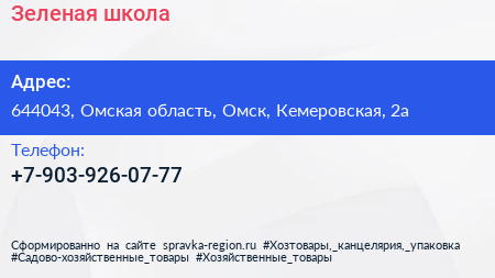 Зеленая школа по адресу 644043, Омская область, Омск, Кемеровская, 2а в дальнейшем Организация, размещена в следующих категориях: