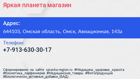 Яркая планета, магазин по адресу 644103, Омская область, Омск, Авиационная, 143а в дальнейшем Организация, размещена в следующих категориях: