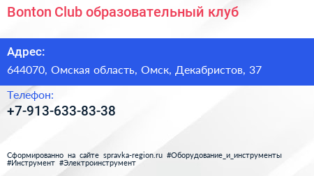 Bonton Club, образовательный клуб по адресу 644070, Омская область, Омск, Декабристов, 37 в дальнейшем Организация, размещена в следующих категориях: