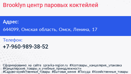 Brooklyn, центр паровых коктейлей по адресу 644099, Омская область, Омск, Ленина, 17 в дальнейшем Организация, размещена в следующих категориях: