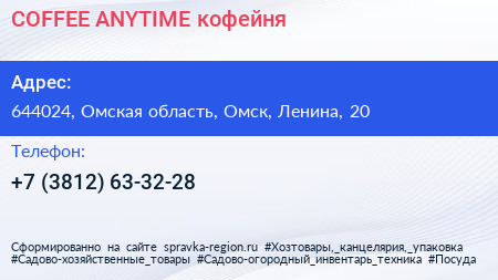 COFFEE ANYTIME, кофейня по адресу 644024, Омская область, Омск, Ленина, 20 в дальнейшем Организация, размещена в следующих категориях: