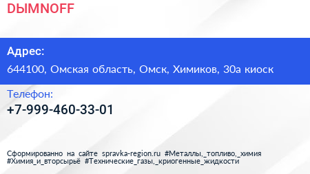 #DЫМNOFF по адресу 644100, Омская область, Омск, Химиков, 30а киоск в дальнейшем Организация, размещена в следующих категориях: