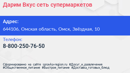Дарим Вкус, сеть супермаркетов по адресу 644106, Омская область, Омск, Звёздная, 10 в дальнейшем Организация, размещена в следующих категориях:
