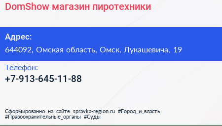 DomShow, магазин пиротехники по адресу 644092, Омская область, Омск, Лукашевича, 19 в дальнейшем Организация, размещена в следующих категориях: