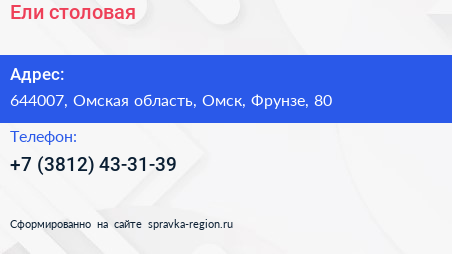 Ели, столовая по адресу 644007, Омская область, Омск, Фрунзе, 80 в дальнейшем Организация, размещена в следующих категориях: