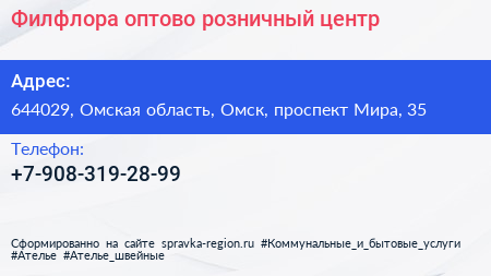 Филфлора, оптово-розничный центр по адресу 644029, Омская область, Омск, проспект Мира, 35 в дальнейшем Организация, размещена в следующих категориях: