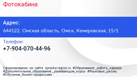 Фотокабина по адресу 644122, Омская область, Омск, Кемеровская, 15/1 в дальнейшем Организация, размещена в следующих категориях: