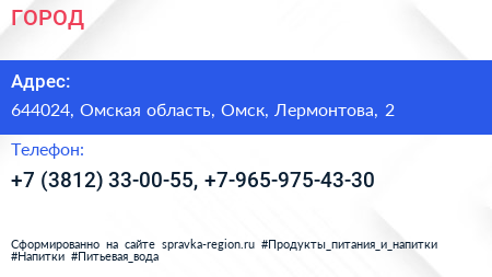 ГОРОД по адресу 644024, Омская область, Омск, Лермонтова, 2 в дальнейшем Организация, размещена в следующих категориях: