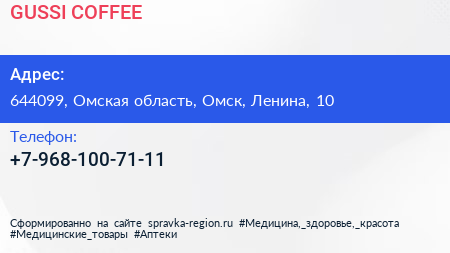 GUSSI COFFEE по адресу 644099, Омская область, Омск, Ленина, 10 в дальнейшем Организация, размещена в следующих категориях: